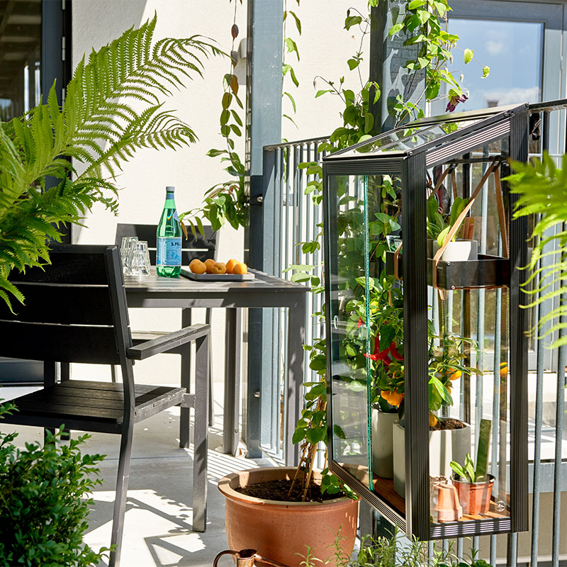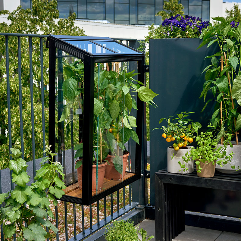 Har du ikke meget plads på altanen, men ønsker stadig at dyrke f.eks. chili, tomater, små agurker eller krydderurter, Så er Juliana Urban Balcony minidrivhus den helt perfekte løsning. Det optager stort set ingen plads, og hænges på altanens gelænder med beslag, som selvfølgelig medfølger ved køb.