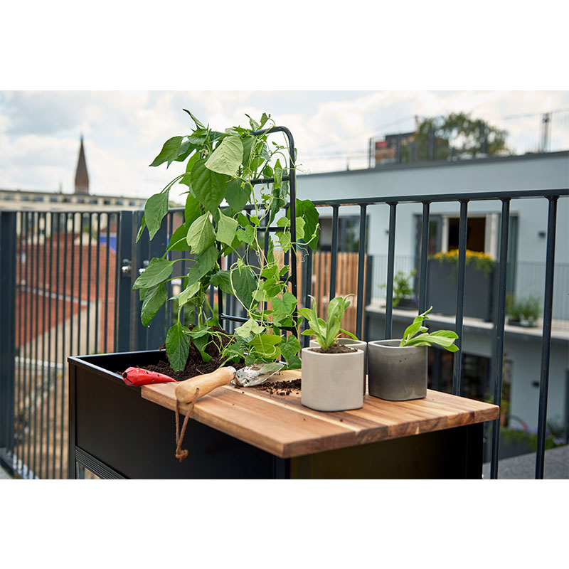 Der er plads til plater både i bunden af drivhuset og ovenpå finder du et kreativt bord, som du kan bruger når du f.eks. skal snitte, hakke eller ordne andre praktiske ting. Drivhuset fungerer rigtig fint som “pynte-genstand” på altanen, da det har et super flot udtryk, og kan tilføre en masse hygge og stemning til altanen eller den lille have.
