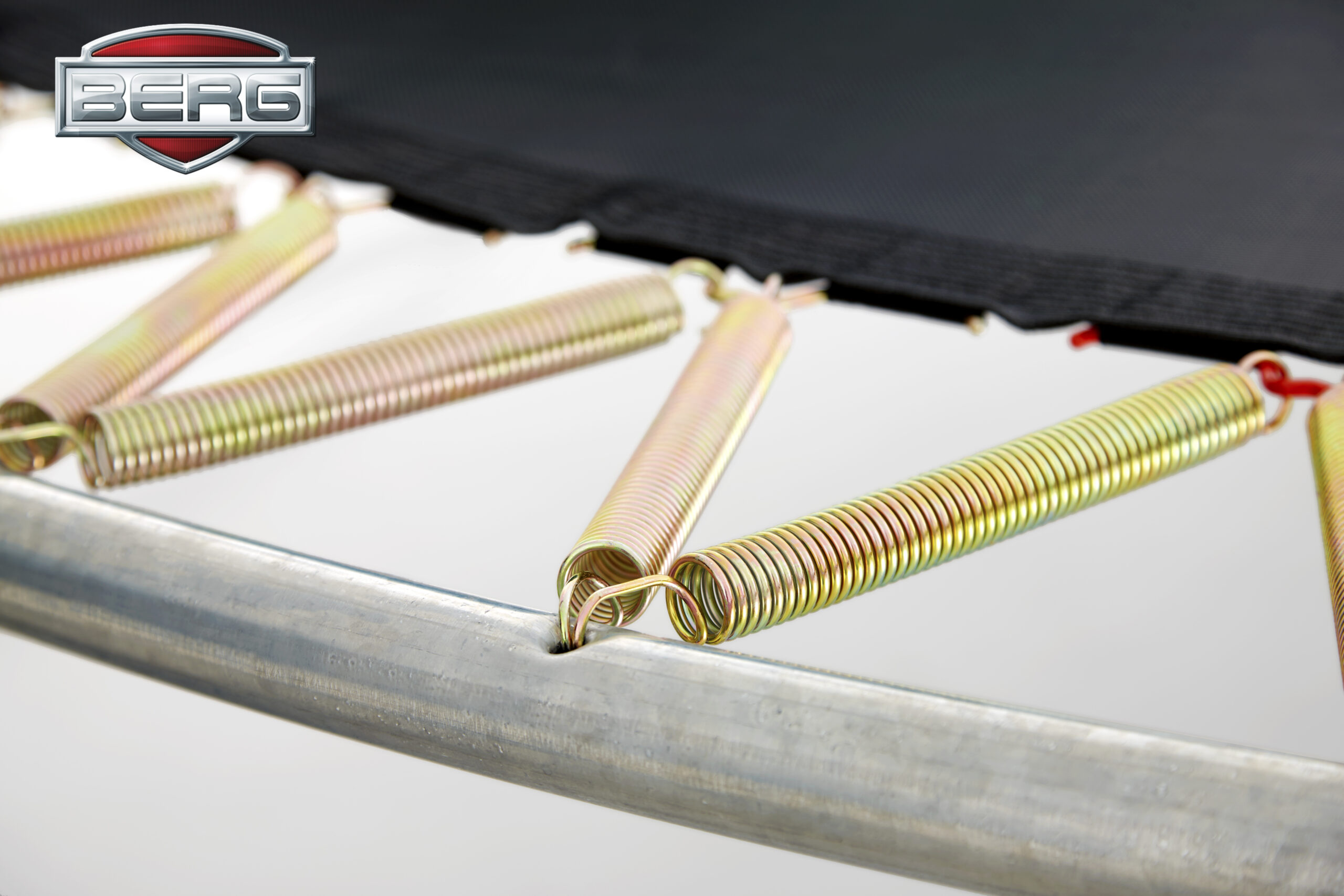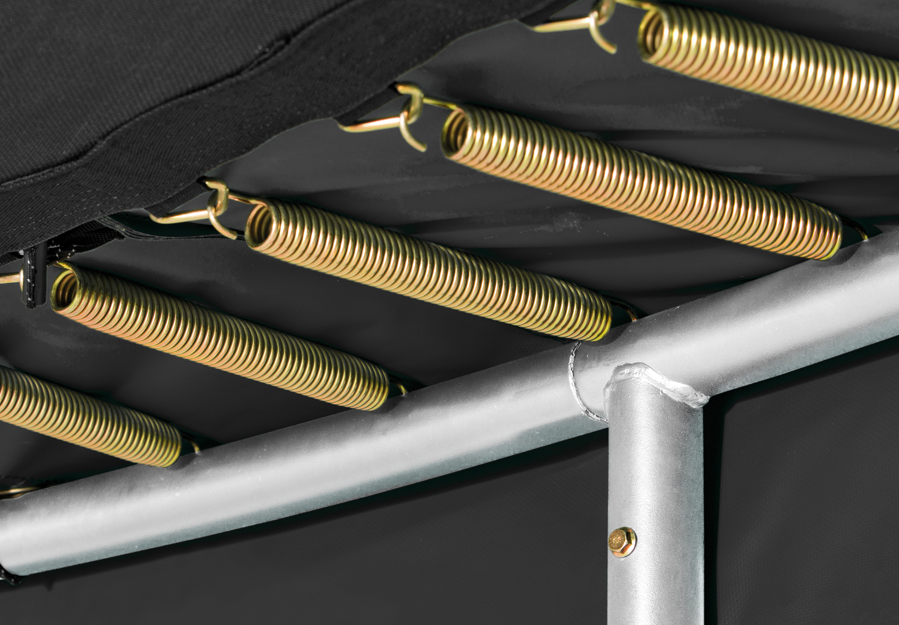 Trampolinen er udstyret med Twinspring Gold fjedre, hvilket betyder, at i stedet for de traditionelle enkelte fjedre, så har du fjedre, der er placeret som et V, og det giver højere hop, og styrker springkraften over hele trampolinen. Fjedrene er dertil galvaniseret så de er rustfri. Den indeholder 112 fjedre, hvilket er den del for en trampolin i denne prisklasse.