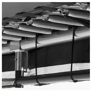 En super fed detalje, som gør at vi fremhæver i sær denne trampolin, så er det nettet, som er fjedrene er gemt bag. Det betyder, at man aldrig skal være bange for at få fødderne i klemme i trampolinens fjedre, og det er faktisk de færreste trampoliner, som har denne egenskab. Derfor kan man være klart mere rolig, når de små hopper på trampolinen, da de altså ikke kan komme i karambolage med fjedrene. Selve fjedrene er dobbeltkoniske og har en diameter på 2,45 cm, hvilket er en super fin diameter når vi taler trampolinfjedre.